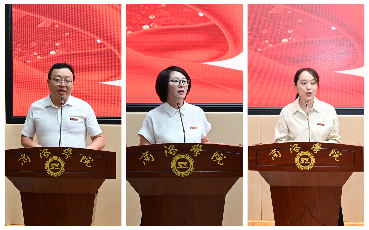 2023年先進集體單位代表袁訓(xùn)鋒、科研工作突出業(yè)績代表喬成芳、教學(xué)工作突出業(yè)績代表房琳分別作了發(fā)言。他們一致表示,今后將始終以習(xí)近平新時代中國特色社會主義思想為指導(dǎo),堅定“躬耕教壇,強國有我”的職業(yè)信念,踐行“四有”好老師標(biāo)準(zhǔn),將扎實的知識功底、過硬的教學(xué)能力、勤勉的教學(xué)態(tài)度、科學(xué)的教學(xué)方法作為自身的基本素質(zhì),不斷提升教育能力、科研能力、社會服務(wù)能力,為把商洛學(xué)院建設(shè)成為省內(nèi)、國內(nèi)一流應(yīng)用型本科院校而努力奮斗。