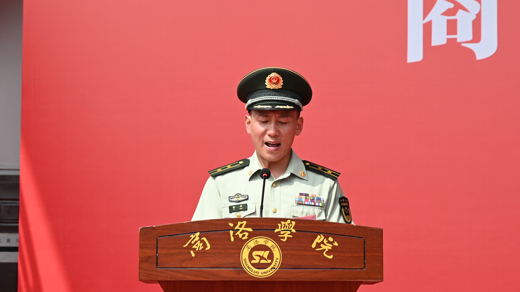 劉勇在講話中代表學(xué)校向大力支持我校軍訓(xùn)工作的中國人民武裝警察部隊(duì)商洛支隊(duì)表達(dá)衷心的感謝,向承擔(dān)軍訓(xùn)任務(wù)的全體教官致敬,向受表彰的先進(jìn)集體和個(gè)人祝賀。他指出,軍訓(xùn)是提高大學(xué)生思想政治覺悟,培養(yǎng)集體精神,掌握軍事知識(shí)和技能,增強(qiáng)國防觀念的一堂必修課。希望同學(xué)們?cè)谖磥淼乃哪昀?,繼續(xù)發(fā)揚(yáng)軍訓(xùn)形成的優(yōu)良作風(fēng),積極投入充滿挑戰(zhàn)和期待的大學(xué)生活,牢記新時(shí)代青年所肩負(fù)的歷史責(zé)任和使命,刻苦學(xué)習(xí),頑強(qiáng)拼搏,將自己鍛煉成德智體美勞全面發(fā)展的時(shí)代英才,用砥礪奮斗書寫屬于自己的無悔青春!