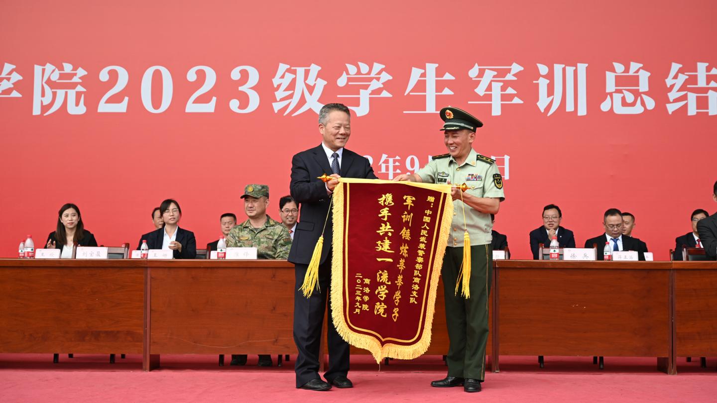 9月14日上午,我校舉行2023級(jí)學(xué)生軍訓(xùn)總結(jié)表彰大會(huì),檢閱2023級(jí)學(xué)生軍訓(xùn)成果,表彰軍訓(xùn)中涌現(xiàn)出的先進(jìn)集體與個(gè)人。校黨委書記張志昌向中國人民武裝警察部隊(duì)商洛支隊(duì)中校副支隊(duì)長、商洛學(xué)院2023級(jí)學(xué)生軍訓(xùn)團(tuán)團(tuán)長徐兵贈(zèng)送了“軍訓(xùn)錘煉莘莘學(xué)子攜手共建一流學(xué)院”的錦旗。黨委副書記劉勇講話,副校長劉寶盈主持大會(huì)。商州區(qū)人民武裝部中校副部長淮鋒出席大會(huì)。各二級(jí)院(部)黨政負(fù)責(zé)人,有關(guān)職能部門負(fù)責(zé)人,全體2023級(jí)參訓(xùn)學(xué)生及輔導(dǎo)員參加大會(huì)。