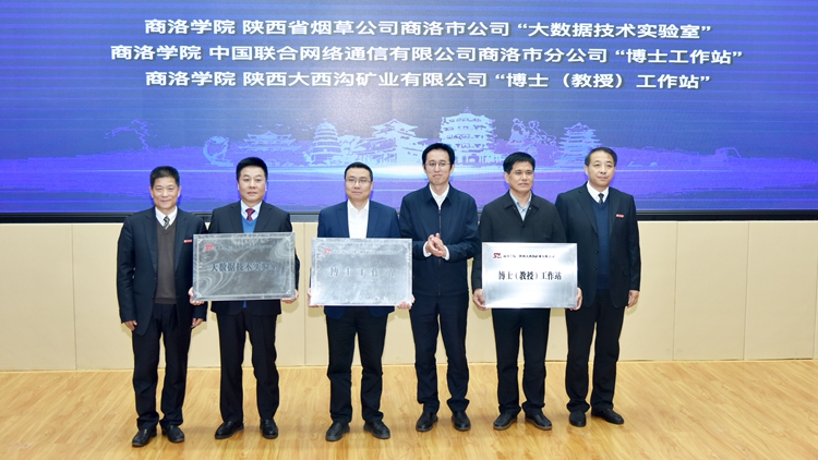 在熱烈的掌聲中,陳發(fā)虎、趙璟為“商洛康養(yǎng)產(chǎn)業(yè)研究院”揭牌。孫舉恒、張志昌共同為“秦嶺商洛生物醫(yī)藥產(chǎn)業(yè)知識(shí)產(chǎn)權(quán)研究中心”、“陜西省知識(shí)產(chǎn)權(quán)信息公共服務(wù)網(wǎng)點(diǎn)”、“商洛學(xué)院秦創(chuàng)原創(chuàng)新促進(jìn)中心工作站”揭牌。孫舉恒、范新會(huì)、王新軍共同為陜西煙草商洛分公司“大數(shù)據(jù)技術(shù)實(shí)驗(yàn)室”、中國(guó)聯(lián)通商洛分公司“博士工作站”、大西溝礦業(yè)有限公司“博士(教授)工作站”授牌,商洛市煙草局局長(zhǎng)洪煒、商洛聯(lián)通公司總經(jīng)理李建慶、大西溝礦業(yè)有限公司總經(jīng)理聶建倉(cāng)代表企業(yè)接牌。
