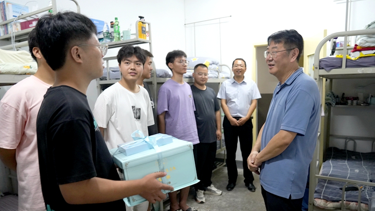 當天下午,張志昌在北新街校區(qū)為家庭經(jīng)濟困難新生送去愛心大禮包。他寄語青年學子,要樹立遠大理想,珍惜光陰、奮力拼搏,不辜負父母、學校和社會的期望。