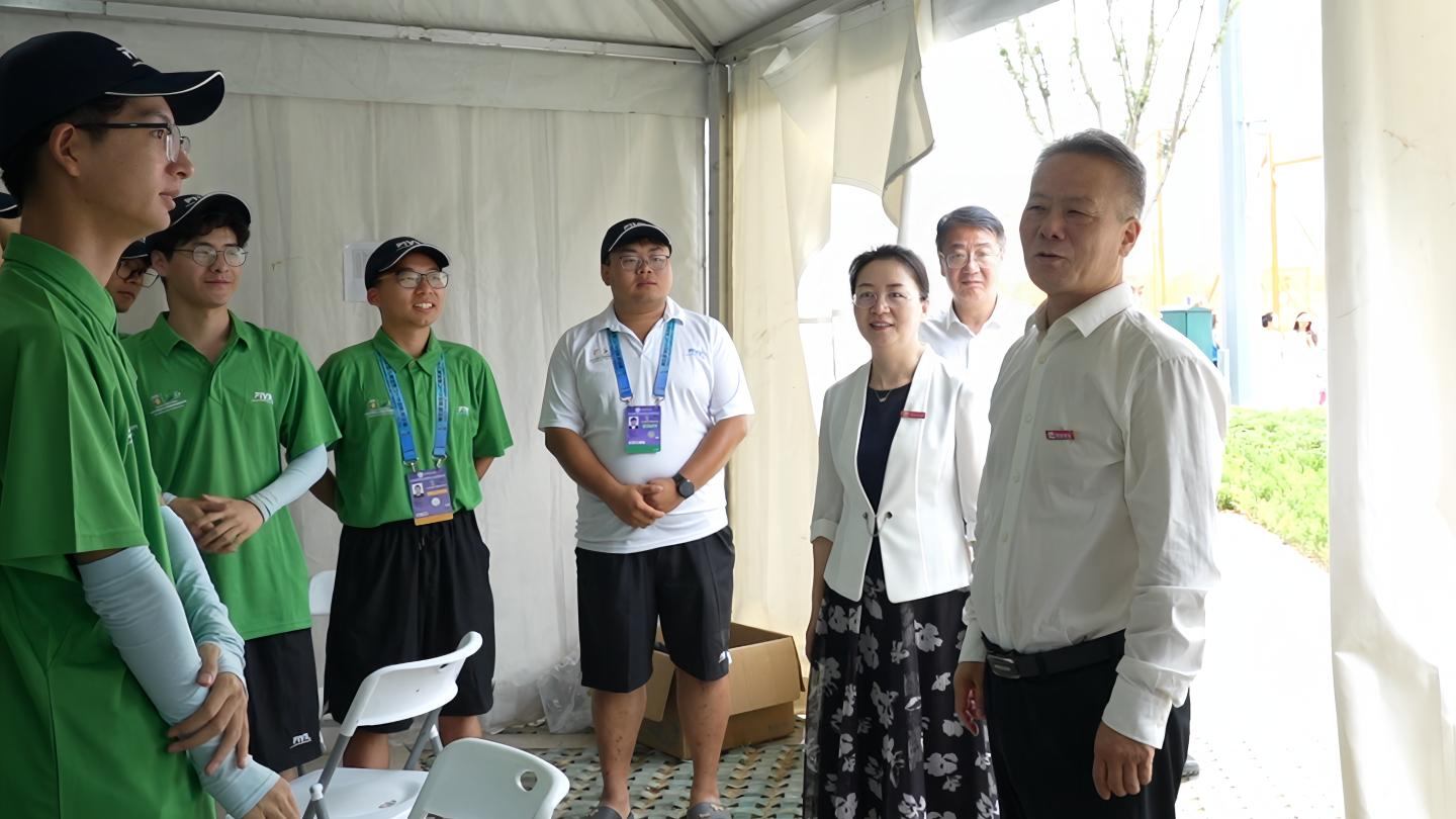 近日,2024國(guó)際排聯(lián)沙灘排球U19世界錦標(biāo)賽在商洛如火如荼進(jìn)行,商洛學(xué)院205名師生志愿者參加本次沙排世錦賽志愿服務(wù)工作,為賽事的順利進(jìn)行保駕護(hù)航。8月30日,商洛學(xué)院黨委書記張志昌、校長(zhǎng)權(quán)雅寧、紀(jì)委書記王浩一行前往比賽現(xiàn)場(chǎng),看望慰問學(xué)校師生志愿者。