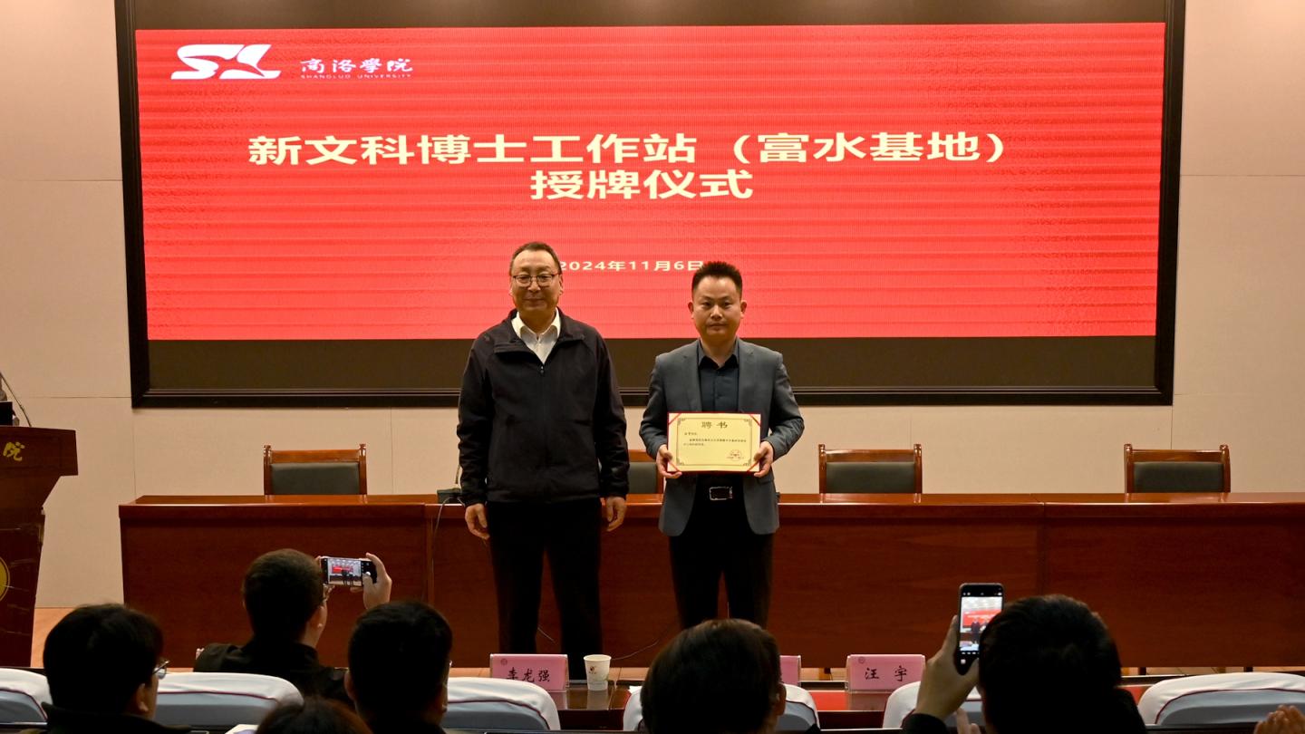 為促進學(xué)校新文科建設(shè)、深化校地融合發(fā)展,11月6日下午,新文科博士工作站富水基地授牌儀式暨秦嶺研究與秦嶺學(xué)建設(shè)研討會在商洛學(xué)院圖書館一樓報告廳舉行。副校長劉寶盈出席儀式并為工作站授牌。富水鎮(zhèn)黨委書記汪宇、富水鎮(zhèn)干部代表,我校新文科博士工作站駐站研究員及大學(xué)生社科研究與社科普及研習(xí)社成員參加活動?;顒佑缮鐣茖W(xué)處處長李龍強主持。
