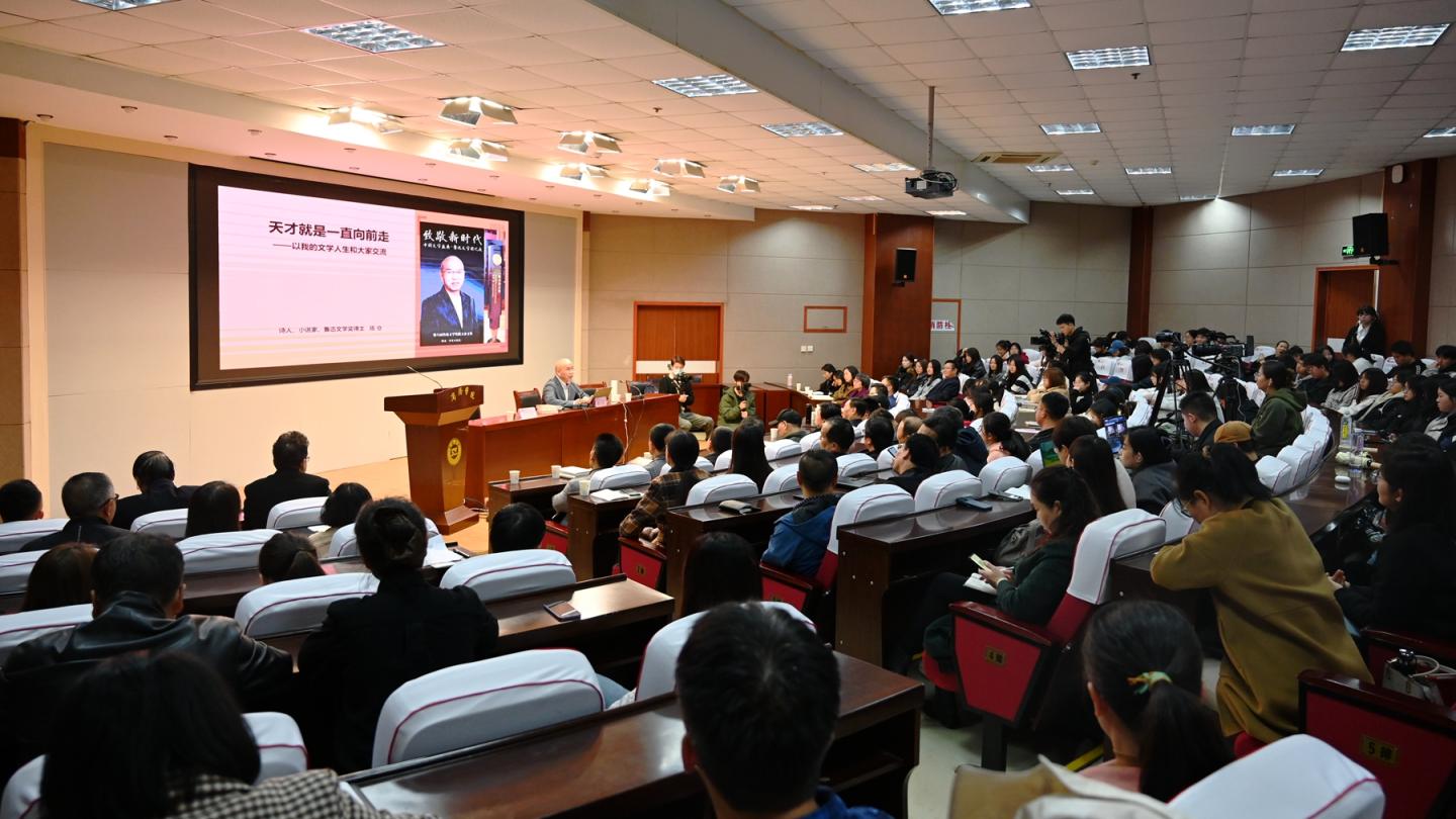 報告會現(xiàn)場氣氛活躍,陳倉與參會學(xué)生進(jìn)行了積極互動。他勉勵在座青年學(xué)子及廣大文學(xué)愛好者,要熱愛生活,從生活中獲取創(chuàng)作的靈感,在追求文學(xué)夢想的過程中堅持自己的信念。