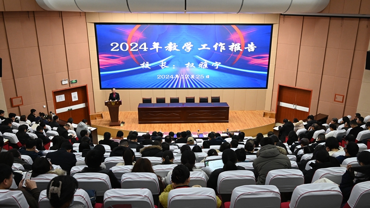 權(quán)雅寧作2024年教學(xué)工作報(bào)告,全面回顧總結(jié)了我校2024年教育教學(xué)工作成就,深入分析了學(xué)校教育教學(xué)工作面臨的形勢(shì)和挑戰(zhàn),圍繞推進(jìn)“三全育人”、做好本科教育教學(xué)審核評(píng)估整改、深化教育教學(xué)改革、數(shù)字賦能課堂創(chuàng)新、加強(qiáng)校園文化建設(shè)5個(gè)方面對(duì)2025年教育教學(xué)工作作了安排部署。她強(qiáng)調(diào),學(xué)校需要立足新發(fā)展階段、深化教育教學(xué)改革,從數(shù)量的擴(kuò)張轉(zhuǎn)變?yōu)橘|(zhì)量的有效提升,走內(nèi)涵式發(fā)展道路。要協(xié)同創(chuàng)新構(gòu)建“三全育人”新格局,培養(yǎng)高素質(zhì)應(yīng)用型人才。要強(qiáng)化服務(wù)導(dǎo)向,有效提升教育對(duì)高質(zhì)量發(fā)展的支撐力、貢獻(xiàn)力。要科學(xué)謀劃、深化改革,持續(xù)推動(dòng)本科教育教學(xué)高質(zhì)量發(fā)展。