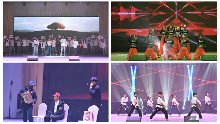 原創(chuàng)詩朗誦《遇見》,在時(shí)光長河的波光里回顧了學(xué)校發(fā)展歷程,歌頌了2024年逐光而行的不凡成就,激勵(lì)廣大師生與學(xué)校一道載夢(mèng)飛翔。舞蹈《額爾古納河》展現(xiàn)了祖國山河的壯美與柔情,體現(xiàn)出人與自然的和諧共生。歌劇《沂蒙山》選段演繹了革命戰(zhàn)士大青山突圍、淵子崖戰(zhàn)役的崢嶸歷史?!段业拇髮W(xué)時(shí)代》通過逗趣的相聲表演生動(dòng)再現(xiàn)了課堂奇遇、宿舍笑談的幽默時(shí)刻。明快靈動(dòng)的小合唱《唱得幸福落滿坡》,用歌聲把觀眾帶到了豐收的田野中,看到了農(nóng)民臉上洋溢的幸福笑容。二胡獨(dú)奏《戰(zhàn)馬奔騰》飽含著勇往直前的力量,訴說著英雄們的壯志豪情?!稇蚯?lián)唱》將眾多藝術(shù)形式巧妙聚集,唱念做打、五彩臉譜,一招一式盡顯東方之美。外籍教師羅杰一、王亮、艾瑪和國際創(chuàng)意課程學(xué)生合唱《We are the world》,用音樂展現(xiàn)了超越國界和文化的團(tuán)結(jié)友愛。魔術(shù)表演《選擇》以絕妙的構(gòu)思、精湛的手法為觀眾帶來無盡驚喜。舞蹈表演《醉春風(fēng)》,在水墨煙雨中弄花影、戲春風(fēng),展現(xiàn)了草長鶯飛、杏花春雨的江南美景。《流行歌曲串燒》唱響青春之歌,給燦爛的成長歲月點(diǎn)燃生生不息的花火?!段鋭?dòng)華章》將太極的柔、雙截棍的巧、跆拳道的剛匯聚一處,在動(dòng)靜之間帶領(lǐng)觀眾走進(jìn)武術(shù)世界。健身操舞《青春就這young》整齊劃一的動(dòng)作、自信美麗的笑容,展現(xiàn)了商院學(xué)子積極向上的精神風(fēng)貌。
