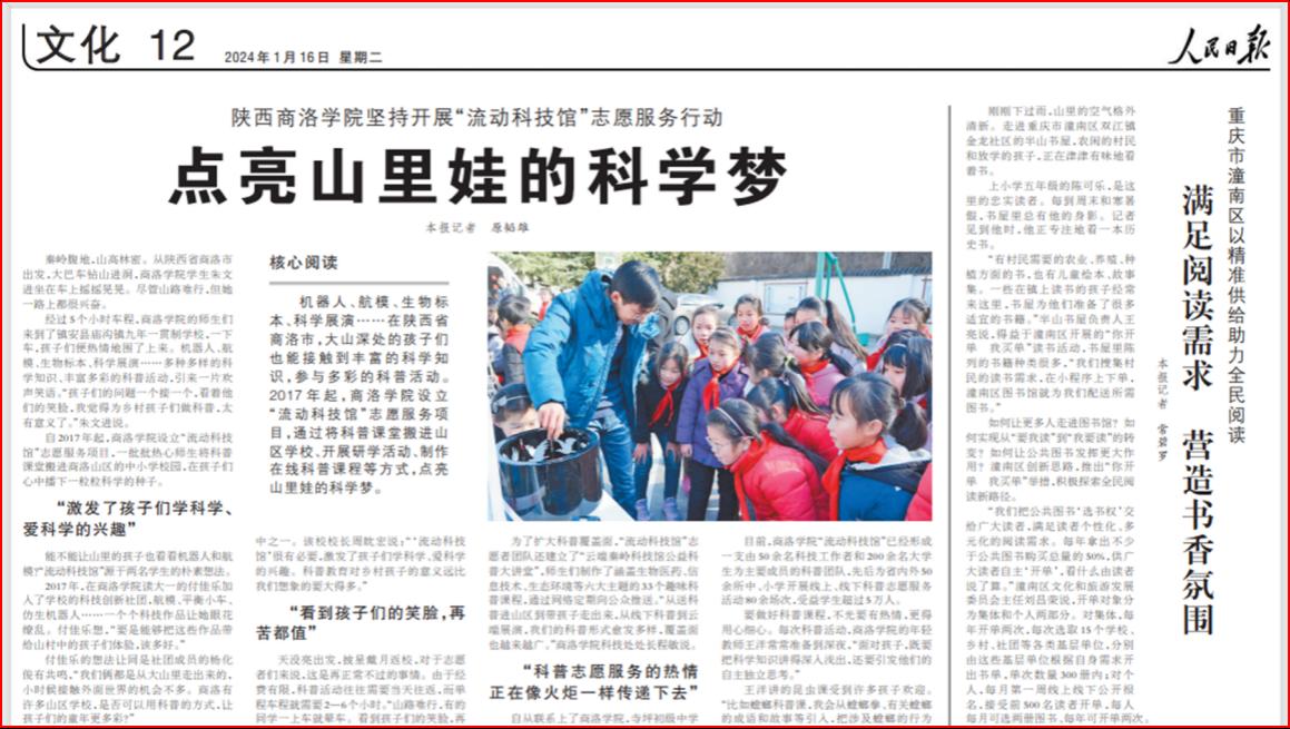 《人民日報》專題報道商洛學(xué)院“流動科技館”志愿服務(wù)工作