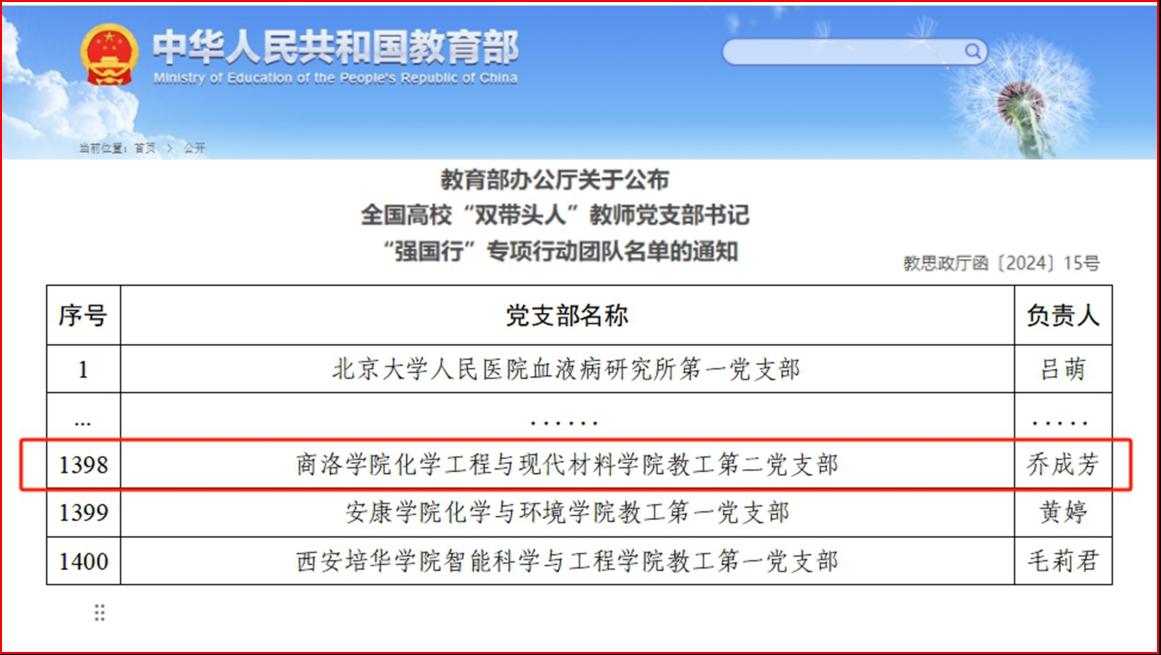 化材學(xué)院教工第二黨支部入選全國“雙帶頭人”教師黨支部書記“強國行”專項行動團隊