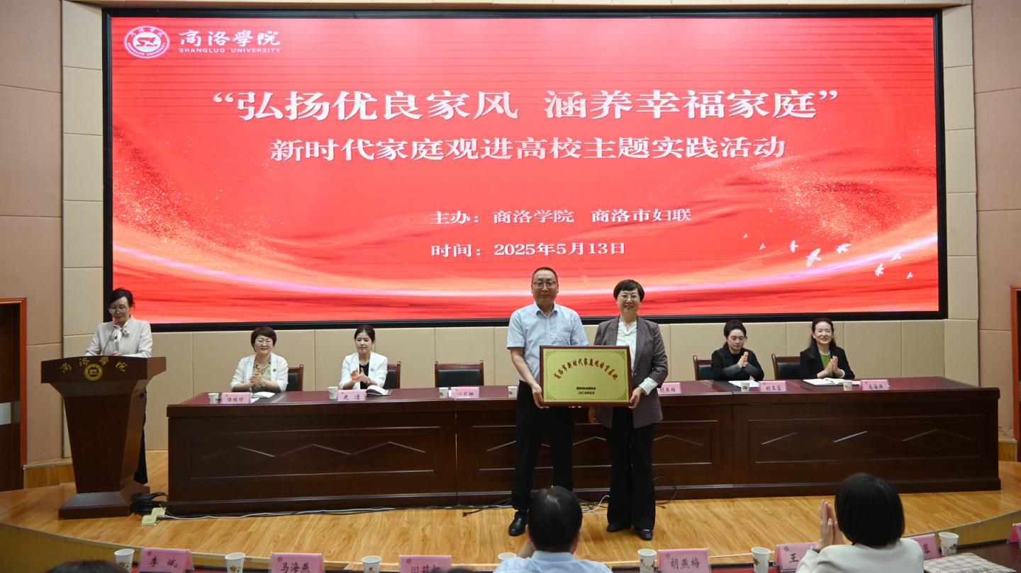 5月13日下午,商洛學(xué)院聯(lián)合商洛市婦聯(lián)舉辦新時(shí)代家庭觀進(jìn)高校主題實(shí)踐活動(dòng)。市婦聯(lián)全體干部、市直相關(guān)單位青年職工和學(xué)院師生400余人共同學(xué)習(xí)《習(xí)近平關(guān)于注重家庭家教家風(fēng)建設(shè)論述摘編》相關(guān)篇目。校地合作共建“商洛市新時(shí)代家庭觀培育基地”,向全市人民群眾發(fā)出《構(gòu)建新時(shí)代家庭觀 創(chuàng)造健康幸福生活》倡議書。商洛學(xué)院校長權(quán)雅寧教授作“弘揚(yáng)優(yōu)良家風(fēng) 涵養(yǎng)幸福家庭—女性力量的文化與時(shí)代重構(gòu)”專題講座。市婦聯(lián)主席胡燕梅為“商洛市新時(shí)代家庭觀培育基地”授牌,校黨委副書記劉寶盈接牌。