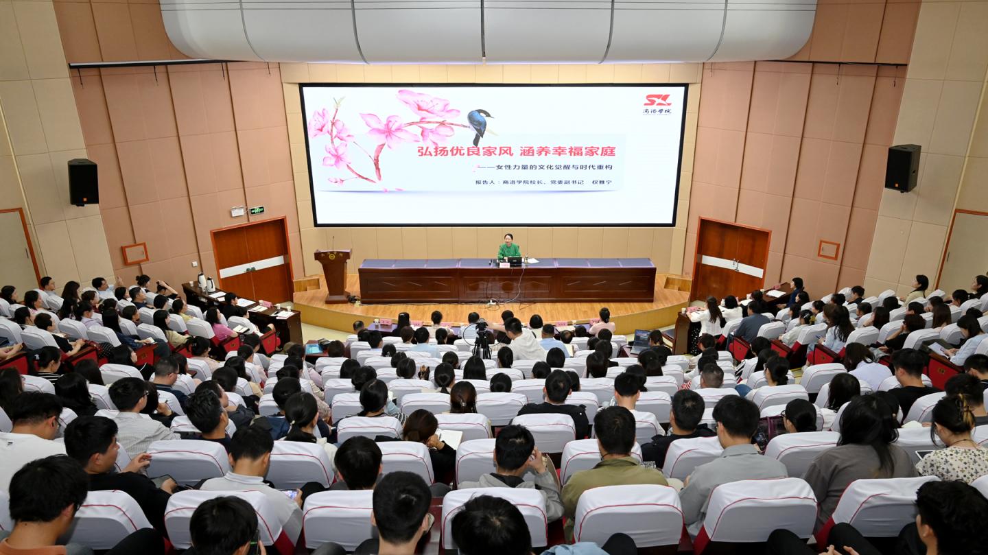 權(quán)雅寧在講座中從“歷史中的女性”“關(guān)系中的女性”“新時(shí)代女性何以可能”三個(gè)維度和與會(huì)干部共同探討女性與家風(fēng)傳承的時(shí)代密碼。她列舉了古今中外不同的女性形象,深入闡釋了女性在“身份演變”和“社會(huì)評價(jià)”中呈現(xiàn)出的復(fù)雜多樣的內(nèi)在關(guān)系。從“婚姻制度的選擇”“性的生物基礎(chǔ)”“愛情與親情的感情潤色”三個(gè)層次分析了婚姻家庭中的兩性關(guān)系,倡導(dǎo)師生樹立性別平等觀念,呼吁女性在不同身份角色中做到自信、自強(qiáng)、獨(dú)立,努力實(shí)現(xiàn)自我價(jià)值,為社會(huì)進(jìn)步貢獻(xiàn)“她力量”,為新時(shí)代家風(fēng)建設(shè)添磚加瓦。