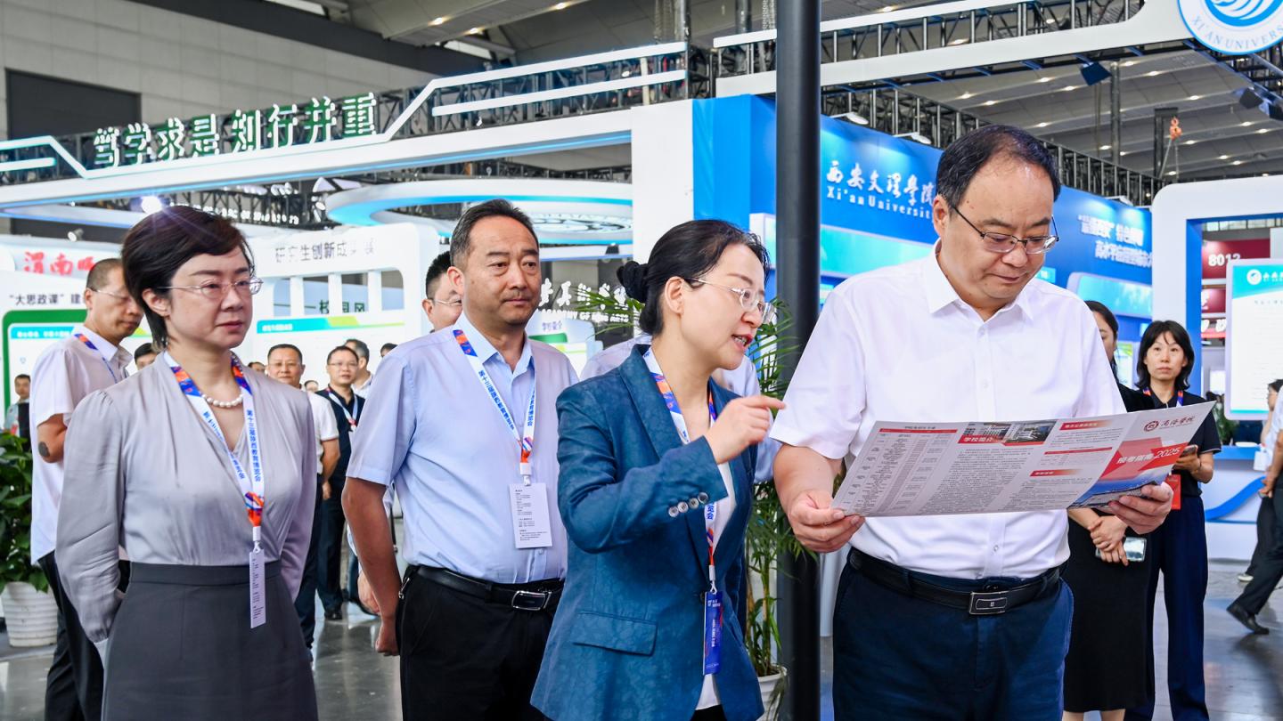 陜西省委教育工委書(shū)記、陜西省教育廳廳長(zhǎng)王樹(shù)聲蒞臨我校展位參觀指導(dǎo),詳細(xì)了解我校近年來(lái)聚焦人工智能技術(shù)創(chuàng)新、秦嶺生態(tài)環(huán)境保護(hù)、生物資源開(kāi)發(fā)利用、食品加工產(chǎn)業(yè)轉(zhuǎn)化等方面的科研成果。