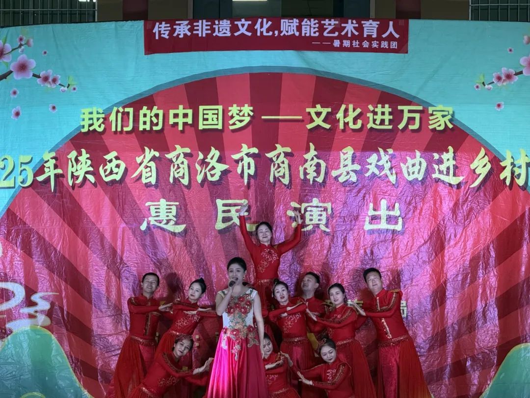 ——文化展演“惠民生”。藝術(shù)學院“傳承非遺文化,賦能藝術(shù)育人”暑期社會實踐團赴商南縣富水鎮(zhèn)桑樹村等地,與縣劇團專業(yè)演員聯(lián)袂登臺,為當?shù)卮迕瘾I上“戲曲進鄉(xiāng)村”文化惠民演出,為鄉(xiāng)村文化振興注入青春動能。