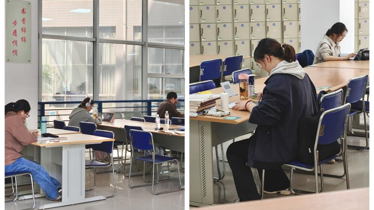 圖書館內(nèi)同樣是一派繁忙而寧?kù)o的學(xué)習(xí)景象。所有閱覽室和自習(xí)區(qū)均正常開(kāi)放,同學(xué)們或埋頭苦讀,或認(rèn)真做著筆記,沉浸在知識(shí)的海洋里。