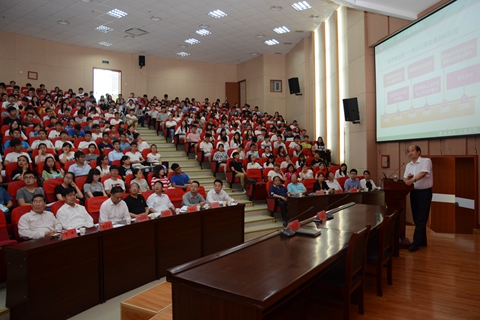 劉建林以“商洛學(xué)院的昨天 今天 明天”為題,從“四十年勵(lì)精圖治、升本十年風(fēng)雨兼程、2015年厚積薄發(fā)”三個(gè)方面全面總結(jié)回顧了我校建校40年來取得的成就,并介紹了學(xué)校下一步工作思路和目標(biāo)、發(fā)展路徑選擇與措施?!吧搪鍖W(xué)院是鑲嵌于商洛大地上的一張金色名片,是飄揚(yáng)在丹江河畔上空的一道靚麗的風(fēng)景線,她支持著商洛城市社會(huì)品質(zhì)的提升,支撐著商洛區(qū)域社會(huì)經(jīng)濟(jì)文化的可持續(xù)發(fā)展”、“商洛學(xué)院是我們的共同家園,是我們每個(gè)人發(fā)展的平臺(tái)和依靠”——這些鏗鏘有力的話語贏得了在座學(xué)生的高度認(rèn)同,現(xiàn)場(chǎng)不斷爆發(fā)出熱烈的掌聲。