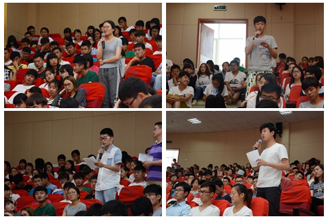 在互動(dòng)環(huán)節(jié),十余位學(xué)生分別就大家關(guān)注的考研、英語學(xué)習(xí)、課堂教學(xué)、創(chuàng)新創(chuàng)業(yè)、實(shí)習(xí)就業(yè)、學(xué)習(xí)生活條件改善、跨專業(yè)交流等問題進(jìn)行了提問。劉建林認(rèn)真細(xì)致地一一做了解答,并要求各相關(guān)部門及時(shí)落實(shí)。在談到大學(xué)生創(chuàng)新創(chuàng)業(yè)話題時(shí),劉建林指出,學(xué)校高度重視大學(xué)生創(chuàng)新工作,完善了相關(guān)政策體系,把創(chuàng)新學(xué)分作為必修學(xué)分,把教師指導(dǎo)學(xué)生創(chuàng)新計(jì)入成績(jī),從培養(yǎng)方案設(shè)計(jì)、輿論氛圍營(yíng)造、課余活動(dòng)安排引導(dǎo)、創(chuàng)新空間的爭(zhēng)取等方面鼓勵(lì)、支持在校大學(xué)生創(chuàng)新;同學(xué)們也要樹立正確的創(chuàng)新觀念,積極利用假期等課余時(shí)間開展社會(huì)實(shí)踐、參與課題研究,綜合運(yùn)用各種資源提升自己的創(chuàng)新能力。