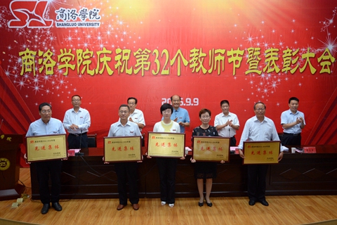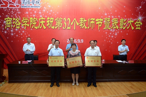 在莊嚴(yán)的國歌聲中,慶祝暨表彰大會(huì)開始。校黨委副書記彭虎軍宣讀了表彰決定。出席大會(huì)的校領(lǐng)導(dǎo)為獲得先進(jìn)集體榮譽(yù)稱號(hào)的化學(xué)工程與現(xiàn)代材料學(xué)院、生物醫(yī)藥與食品工程學(xué)院、語言文化傳播學(xué)院、教務(wù)處、教學(xué)評(píng)估中心5個(gè)單位,獲得優(yōu)秀教師榮譽(yù)稱號(hào)的冀玉良等21人,獲得優(yōu)秀教育工作者榮譽(yù)稱號(hào)的何念武等9人,獲得師德先進(jìn)集體榮譽(yù)稱號(hào)的城鄉(xiāng)規(guī)劃與建筑工程學(xué)院、經(jīng)濟(jì)與管理學(xué)院、學(xué)生處3個(gè)單位,獲得師德先進(jìn)個(gè)人榮譽(yù)稱號(hào)的黃元英等10人頒獎(jiǎng)。