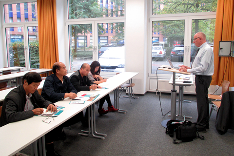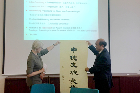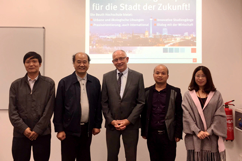在德國柏林應(yīng)用科技大學(xué),劉建林一行先后前往兩個(gè)分校區(qū),分別與Hoffjann教授和Kammasch教授在應(yīng)用型人才培養(yǎng)過程中的教學(xué)質(zhì)量管理的模式、管理質(zhì)量管理的模式、工程教育及其教學(xué)法、應(yīng)用型教師的培養(yǎng)等方面開展了深入交流和探討,了解了《博洛尼亞宣言》后歐洲高等教育體系的改革和建設(shè)成果。