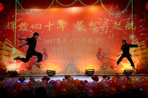 猴引康莊道,雞迎錦繡春。12月29日晚,我校隆重舉辦2017年元旦文藝晚會。省上有關部門領導,商洛市有關領導,我校部分合作單位負責人以及學校黨政領導與師生代表一同觀看了晚會。