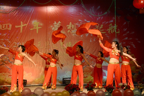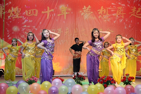 當晚的大學生活動中心張燈結彩,喜氣洋洋,洋溢著濃濃的節(jié)日氛圍。晚會在民樂合奏《北京喜訊傳邊塞》的歡快樂曲聲中緩緩拉開了帷幕。歌曲、舞蹈、朗誦、魔術、健身操等十七個形式多樣、精彩紛呈的節(jié)目贏得了觀眾們熱烈的掌聲與陣陣喝彩。