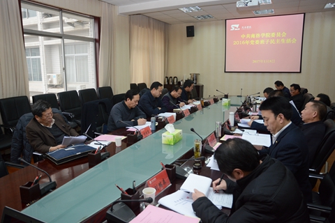 為開好2016年民主生活會,學校黨委高度重視,精心安排。一是召開了黨委中心組擴大會議,專題學習討論了十八屆六中全會和全國高校思想政治工作會議精神,深入開展“兩學一做” 學習教育。二是制定了《黨委班子2016年度民主生活會方案》,明確了開好民主生活會各環(huán)節(jié)的工作任務和要求。三是召開了二級教學單位代表、職能部門代表及博士代表三個座談會廣泛征集對黨委班子及班子成員的意見和建議,列出了問題清單。四是班子成員進行了深入的談心談話,黨委班子和班子成員按照民主生活會方案要求,撰寫了班子對照檢查材料和個人發(fā)言提綱,為開好民主生活會做了充分準備。
