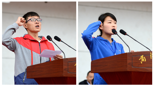 運(yùn)動員代表吳飛、裁判員代表張馨嬌分別代表全體運(yùn)動員、裁判員宣誓。