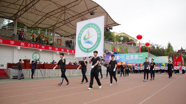 追逐四月的和風(fēng),沐浴初夏的陽光,4月20日上午,我校2017年田徑運(yùn)動會正式開幕。校長范新會、紀(jì)委書記王思懷、副校長劉勇出席開幕式。由各二級學(xué)院和教職工代表組成的10個方隊,以昂揚(yáng)的姿態(tài)、矯健的步伐走過主席臺,展現(xiàn)了我校師生意氣風(fēng)發(fā)、昂揚(yáng)向上的精神風(fēng)貌。范新會致開幕詞并宣布運(yùn)動會開幕。各二級教學(xué)單位黨政負(fù)責(zé)人、各職能部門負(fù)責(zé)人以及全體學(xué)生參加本次運(yùn)動會。開幕式由劉勇主持。