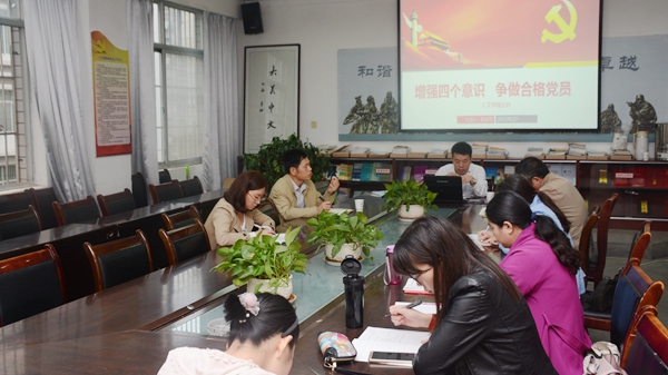 為迎接黨的十九大勝利召開(kāi),深入推進(jìn)“兩學(xué)一做”學(xué)習(xí)教育常態(tài)化制度化,我校圍繞增強(qiáng)“四個(gè)意識(shí)”、維護(hù)中央權(quán)威、向中央看齊主題開(kāi)展集中講黨課活動(dòng)。9月27下午,校黨委副書(shū)記彭虎軍以《增強(qiáng)“四個(gè)意識(shí)”,爭(zhēng)做合格黨員》為題,為人文學(xué)院教工第四黨支部全體黨員講了一堂專題黨課。