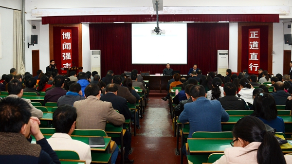 10月18日至24日,黨的十九大在北京勝利召開(kāi)。我校及時(shí)召開(kāi)黨委理論學(xué)習(xí)中心組集體理論學(xué)習(xí)擴(kuò)大會(huì),專題學(xué)習(xí)黨的十九大精神,研究部署我校學(xué)習(xí)宣傳貫徹黨的十九大精神相關(guān)工作。十九大代表、商洛市委書(shū)記陳俊來(lái)到我校,深入師生宣講黨的十九大精神;中國(guó)人民大學(xué)博士生導(dǎo)師,中國(guó)思想政治工作研究會(huì)、中宣部思想政治工作研究所特約研究員張?jiān)骑w教授應(yīng)邀來(lái)我校作專題報(bào)告。為了使師生深入學(xué)習(xí)領(lǐng)會(huì)黨的十九大精神,我校及時(shí)成立了以馬克思主義學(xué)院教師為主體,由校紀(jì)委書(shū)記王思懷教授任團(tuán)長(zhǎng)的黨的十九大精神宣講團(tuán)。宣講團(tuán)成立后,在一周時(shí)間內(nèi)通過(guò)宣講報(bào)告、形勢(shì)與政策課等形式集中發(fā)力,實(shí)現(xiàn)了全校師生全覆蓋。
