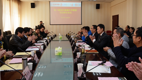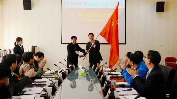 在書記校長論壇上,我校作為2018年漢江流域聯(lián)盟輪值理事長單位接受2017年漢江流域聯(lián)盟輪值理事長單位、南陽師范學院黨委書記黃榮杰授旗,副校長劉勇接旗;表決通過了湖北汽車工業(yè)學院作為2019年輪值理事長單位并成立新的秘書處,負責盟內(nèi)日常工作的開展。聯(lián)盟高校的書記校長以“深化合作,開拓創(chuàng)新,促進漢江流域大學建設”為主題,圍繞“雙一流”建設與創(chuàng)新發(fā)展、應用型人才培養(yǎng)與創(chuàng)新發(fā)展、師資隊伍建設與創(chuàng)新發(fā)展、高校治理體系法治化與創(chuàng)新發(fā)展、國際合作交流與創(chuàng)新發(fā)展、大學文化建設與創(chuàng)新發(fā)展、高校黨的建設與創(chuàng)新發(fā)展等議題分別作了主題發(fā)言。他們共同表示,聯(lián)盟高校要以黨的十九大精神為指導,立足國家戰(zhàn)略和區(qū)域規(guī)劃,瞄準區(qū)域經(jīng)濟社會發(fā)展需要,加強相互合作與發(fā)展,創(chuàng)新協(xié)同發(fā)展體制機制,實現(xiàn)優(yōu)勢互補、整體提升,開創(chuàng)互利合作共贏新局面。