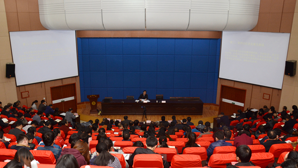 11月27日,省專家學者宣講團黨的十九大精神示范宣講報告會在我校圖書館二樓報告廳舉行。陜西省社科聯(lián)黨組書記、常務(wù)副主席李穎科教授為師生作了題為《堅定文化自信,努力推動社會主義文化繁榮興盛》的專題報告。校領(lǐng)導龍治剛、王思懷、魏書堂、彭虎軍、劉寶盈、劉勇出席報告會,全校副科級以上領(lǐng)導干部、副高級職稱以上教師、青馬班學員等師生近500人聆聽了報告。報告會由黨委書記龍治剛主持。