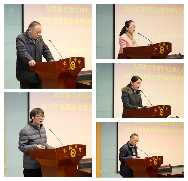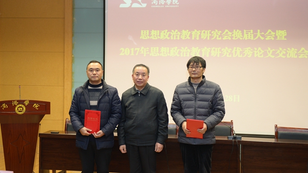 會(huì)議表彰了2017年思想政治教育研究優(yōu)秀論文。王思懷、彭虎軍、左曉民分別為獲得特等獎(jiǎng)、一等獎(jiǎng)、二等獎(jiǎng)的論文作者頒發(fā)了榮譽(yù)證書。