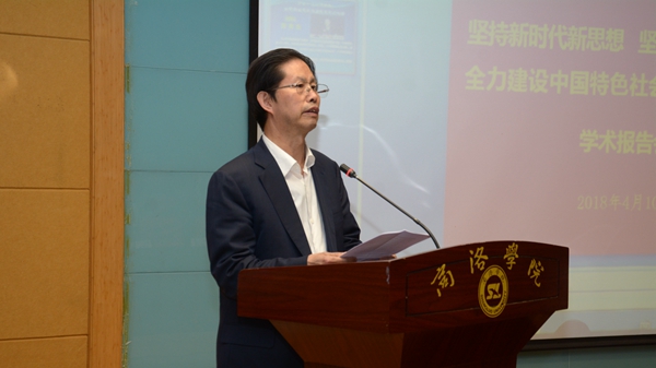 4月10日,陜西省決策咨詢委員會副主任、省人大常委會原副主任、省生態(tài)文明建設(shè)促進(jìn)會名譽會長陳再生來我校作《堅持新時代新思想 堅定綠色發(fā)展道路 全力建設(shè)中國特色社會主義生態(tài)文明》主題學(xué)術(shù)報告。我校黨委書記龍治剛、校長范新會,陜西省人大常委會農(nóng)工委原副主任、省生態(tài)文明建設(shè)促進(jìn)會顧問周樹紅,省生態(tài)文明建設(shè)促進(jìn)會副秘書長張社柱,省環(huán)保廳宣教中心副主任石磊,省生態(tài)文明建設(shè)促進(jìn)會秘書長云嘉敏,商洛市決策咨詢委員會副主任、市人大常委會原副主任羅均讓,商洛市環(huán)保局副局長任云峰出席報告會。來自我校各二級學(xué)院的師生代表聆聽了報告。報告會由范新會主持。