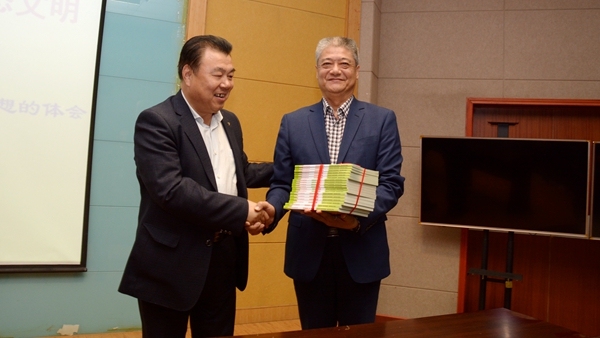報告會上,陜西省環(huán)境保護(hù)宣傳教育中心向我校捐贈了圖書,鼓勵我校繼續(xù)加強生態(tài)文明建設(shè)和生態(tài)環(huán)境保護(hù)。周樹紅在報告會上發(fā)表講話并指出,由陜西省生態(tài)文明建設(shè)促進(jìn)會和陜西省環(huán)境保護(hù)宣傳教育中心主辦的“傳播綠色理念,送您環(huán)保圖書”活動是學(xué)習(xí)貫徹落實黨的十九大精神中關(guān)于加強生態(tài)文明建設(shè)相關(guān)要求的重要舉措,旨在提高全民環(huán)保意識,建設(shè)綠色家園,提高公眾保護(hù)環(huán)境的自覺性,促進(jìn)新時代我省生態(tài)文明建設(shè)穩(wěn)步向前發(fā)展。