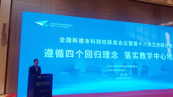 應(yīng)會(huì)議邀請(qǐng),范新會(huì)在大會(huì)上作了題為《全面落實(shí)四個(gè)回歸 扎根地方培養(yǎng)人才》的交流報(bào)告,介紹了我校建校42年來(lái)的發(fā)展歷程,從“把握教育形勢(shì),落實(shí)四個(gè)回歸”“根植地方,走特色辦學(xué)之路”和“推動(dòng)課堂革命,提升立德樹(shù)人成效”等三個(gè)方面總結(jié)了我校近年來(lái)創(chuàng)建一流應(yīng)用型本科院校的做法。交流中介紹的“雙四六”人才培養(yǎng)方案,根植地方行動(dòng)計(jì)劃,校企合作、產(chǎn)教融合,課堂教學(xué)創(chuàng)新等方面的具體做法和成效,引發(fā)了與會(huì)者的廣泛共鳴。
