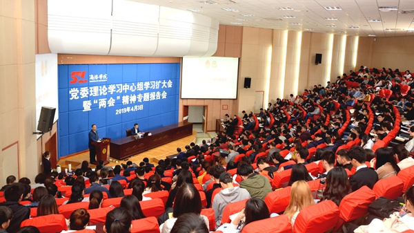 龍治剛在主持時表示,高嶺代表的報告既從整體上完整把握全國兩會的精神內(nèi)涵,又重點突出、深入淺出、親切生動,對我校師生領(lǐng)會全國兩會精神具有重要啟迪作用。他要求全校師生,要堅持以習近平新時代中國特色社會主義思想為指導,通過多種形式認真學習貫徹落實全國兩會精神,準確把握中央對發(fā)展形勢的科學判斷和對今年工作的部署要求,把思想和行動統(tǒng)一到中央決策部署上來,緊密結(jié)合學校工作實際,把全國兩會精神轉(zhuǎn)化為深化改革、推動發(fā)展的具體行動,為建設一流應用型本科院校做出新的貢獻,以優(yōu)異成績慶祝中華人民共和國成立70周年。