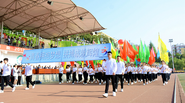 4月18日上午,風(fēng)晴日朗、天高云淡,體育場(chǎng)上彩旗招展、熱鬧非凡,我校2019年田徑運(yùn)動(dòng)會(huì)正式開幕。黨委書記龍治剛、校長范新會(huì)、紀(jì)委書記王思懷、副校長魏書堂、黨委副書記彭虎軍、副校長劉寶盈,各二級(jí)教學(xué)單位黨政負(fù)責(zé)人和各職能部門負(fù)責(zé)人出席開幕式,與全校師生共同觀看了開幕式文體表演。