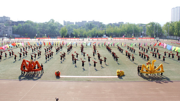 開幕式文體表演亮點(diǎn)頗多,精彩紛呈。我校航模隊(duì)與商洛市航空運(yùn)動(dòng)協(xié)會(huì)夢(mèng)想飛行表演隊(duì)的航模表演率先開場(chǎng),航模飛機(jī)在激昂的音樂聲中搏擊長空,升降翻轉(zhuǎn),劃出一道道優(yōu)美的弧線。建工學(xué)院學(xué)生以紅扇跳勁舞,龍虎相隨,青春激情,以歡快的舞姿、動(dòng)感的隊(duì)形充分展現(xiàn)青春活力?;膶W(xué)院學(xué)生用熱情歡快的啦啦操和“1949”“70”的隊(duì)形,表達(dá)對(duì)祖國深深的熱愛與誠摯的祝福。數(shù)計(jì)學(xué)院學(xué)生以整齊優(yōu)雅的華爾茲雙人舞,展現(xiàn)學(xué)子儒雅優(yōu)秀的一面,用“SLXY"圖樣的隊(duì)形表達(dá)自己對(duì)學(xué)校美好明天的祝福。藝術(shù)學(xué)院學(xué)生身著藏族、傣族、蒙古族、佤族、維吾爾族,朝鮮族、苗族等多個(gè)民族服裝,結(jié)合現(xiàn)代舞蹈動(dòng)作,在愛我中華的樂曲中展現(xiàn)中華民族多元文化風(fēng)采和我校學(xué)子的勃勃生機(jī)。