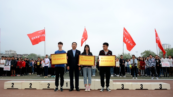 在熱烈的掌聲中,龍治剛為獲得體育道德風(fēng)尚獎(jiǎng)的學(xué)院頒獎(jiǎng),范新會(huì)為團(tuán)體總分前三名獲獎(jiǎng)學(xué)院頒獎(jiǎng),王思懷、劉寶盈分別為男子總分前三名與女子總分前三名獲獎(jiǎng)學(xué)院頒獎(jiǎng)。