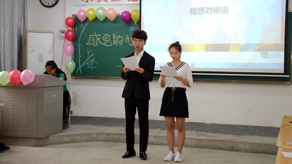 龍治剛向?qū)W生們分享了汪國(guó)真的詩(shī)歌《感謝》,回顧了自己的大學(xué)經(jīng)歷,他講到,“感恩”這個(gè)主題是我們新時(shí)代要倡導(dǎo)和弘揚(yáng)的正能量,此次班會(huì)的每個(gè)環(huán)節(jié)都體現(xiàn)了我們對(duì)優(yōu)秀傳統(tǒng)文化的傳承和發(fā)揚(yáng),我們要懂得感恩,感恩時(shí)代、感恩國(guó)家、感恩父母、感恩同學(xué),更要感謝每一次的成長(zhǎng)和進(jìn)步。他就大學(xué)生如何有價(jià)值的度過(guò)四年求學(xué)時(shí)光提出了四條準(zhǔn)則:一年級(jí)走進(jìn)大學(xué)、認(rèn)識(shí)自我、鎖定目標(biāo);二年級(jí)適應(yīng)大學(xué)、發(fā)現(xiàn)自我、學(xué)會(huì)學(xué)習(xí);三年級(jí)理解大學(xué)、升華自我、全面發(fā)展;四年級(jí)眷戀大學(xué)、超越自我、服務(wù)社會(huì)。他希望學(xué)生們能利用好學(xué)校的師資平臺(tái),在學(xué)習(xí)中勤思考、常研究,充分領(lǐng)略科學(xué)知識(shí)的魅力,以實(shí)際行動(dòng)向自己、家人、學(xué)校、國(guó)家交上一份滿(mǎn)意的答卷,用滿(mǎn)滿(mǎn)收獲回饋關(guān)愛(ài)自己的朋友和師長(zhǎng)。