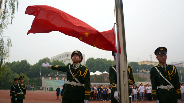 在雄壯的國歌聲中,建工學(xué)院師生整齊列隊,舉行新學(xué)期第一次升國旗儀式,學(xué)生代表李斌以《新學(xué)期,新開始,新征程》為題作國旗下演講。