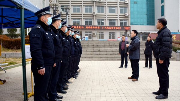 2位校領(lǐng)導(dǎo)先后來(lái)到學(xué)校各個(gè)保衛(wèi)室、教學(xué)樓值班點(diǎn)、學(xué)生公寓樓、動(dòng)力中心、監(jiān)控中心以及新型冠狀病毒感染肺炎疫情防控辦公室等處,與堅(jiān)守崗位的教職員工親切握手,詳細(xì)詢問(wèn)校園的安全保衛(wèi)、動(dòng)力保障、值班安排等情況,代表學(xué)校向他們表示誠(chéng)摯的感謝,并送上節(jié)日慰問(wèn)金,叮囑大家履行好崗位職責(zé)的同時(shí)提高防護(hù)意識(shí)、做好防護(hù)措施,時(shí)刻把師生生命安全和身體健康放在第一位,高質(zhì)量做好疫情防控工作,全力以赴做好春節(jié)和寒假期間校園安全穩(wěn)定工作。