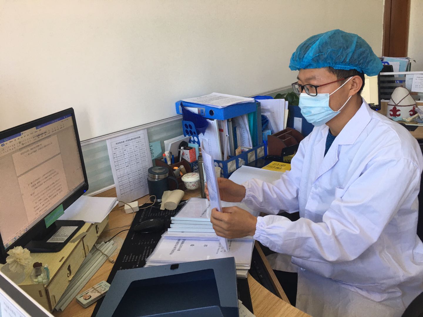 畢業(yè)于數(shù)學(xué)與計算機應(yīng)用學(xué)院統(tǒng)計專業(yè)1501班的蘆杉,實習(xí)結(jié)束后就業(yè)于伊犁市第九中學(xué),疫情期間堅守防疫崗位,負(fù)責(zé)為隔離人員送餐、測量體溫、消殺房間、健康登記、衛(wèi)生清潔等工作。畢業(yè)于生物醫(yī)藥與食品工程學(xué)院生物技術(shù)專業(yè)的2019屆學(xué)生吳飛,就業(yè)于伊犁州特克斯縣第一中學(xué),被抽調(diào)到隔離點負(fù)責(zé)隔離人員檔案和心理輔導(dǎo)工作。早起晚睡的他,已連續(xù)工作半月有余,每天只能休息3個小時。為了核查清楚隔離人員的流調(diào)表,常常需要穿著防護服到隔離人員的房間,逐一詢問其旅居史、接觸史和活動軌跡。他說“隔離點成立初期,工作量大、任務(wù)重,每天基本上都是凌晨5:00睡覺,還要時刻關(guān)注隔離人員的心理動態(tài)。有些人受疫情影響,情緒波動比較大,有的甚至?xí)龀鰳O端行為,所以每天要和隔離人員通話聯(lián)系,了解其心理動態(tài),建立臺帳?!?/p>