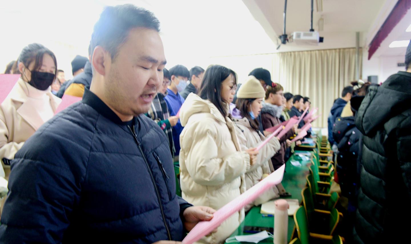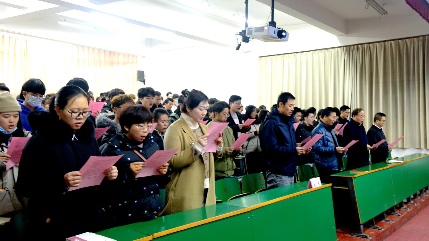 ——組織參加國(guó)家憲法日“憲法晨讀”活動(dòng)。12月4日上午,校黨委副書(shū)記劉勇,宣傳部、學(xué)工部、團(tuán)委負(fù)責(zé)人,和馬克思主義學(xué)院法學(xué)專(zhuān)業(yè)教師、二級(jí)學(xué)院師生代表190人,在1號(hào)樓報(bào)告廳二共同收看、參與了教育部普法網(wǎng)平臺(tái)直播的“憲法晨讀”活動(dòng)。上午9:00,全體起立,跟隨直播現(xiàn)場(chǎng)行注目禮、唱國(guó)歌、跟讀憲法條款內(nèi)容,與北京主會(huì)場(chǎng)同唱《憲法伴我們成長(zhǎng)》歌曲,觀看了優(yōu)秀學(xué)生代表的現(xiàn)場(chǎng)展演。大家表示,通過(guò)參加晨讀活動(dòng),進(jìn)一步強(qiáng)化了憲法意識(shí),增強(qiáng)了愛(ài)國(guó)主義情感,我們要帶頭學(xué)習(xí)、宣傳憲法內(nèi)容,讓?xiě)椃ň裨谛@扎根。