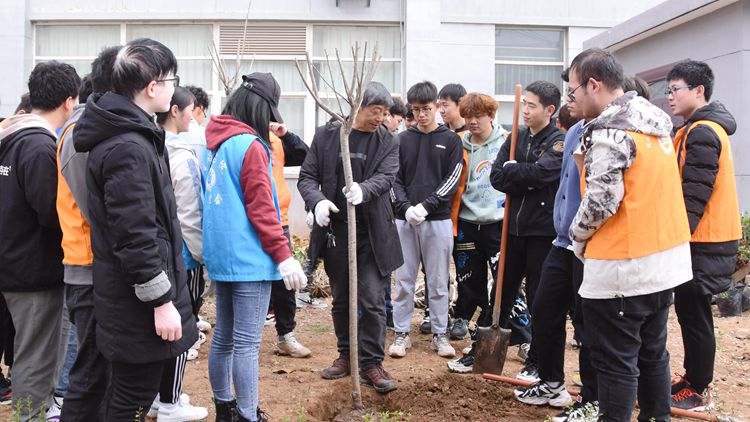 3月12日上午,校團(tuán)委組織青馬班學(xué)員、學(xué)生會干部和化材學(xué)院學(xué)生志愿者50余人前往丹江校區(qū)開展植樹活動,引導(dǎo)廣大學(xué)生積極參與丹江校區(qū)綠化建設(shè)。后勤保障處選派高級實驗師閆玉厚為志愿者們詳細(xì)講解植樹流程,使同學(xué)們在接受勞動教育的同時增添了園林樹木栽培知識。全體同學(xué)熱情高漲、干勁十足,戴上手套、拿著鐵锨等工具來到指定區(qū)域,運用剛學(xué)到的知識俯身撿拾碎石,揮鍬鏟土、扶正樹苗、培土壓實,提桶澆水,一絲不茍地每一棵樹苗“安家”,以實際行動為校園綠色建設(shè)貢獻(xiàn)力量。