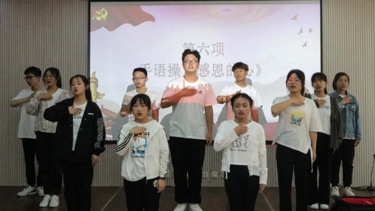 活動期間,師生們還集體觀看學習了“回顧黨史悟初心,感念師恩頌真情”紅色視頻。四位學生用深情激昂的配樂詩朗誦《感恩有您》,帶領(lǐng)大家重溫中國共產(chǎn)黨不屈不撓艱苦奮斗的光輝歷程。感恩手語操使全場散發(fā)著愛的芬芳,流淌著愛的旋律。活動最后,學院向全體與會同學發(fā)放了感恩主題書簽,使廣大學子時時感黨恩,刻刻念師情,牢記責任和擔當。