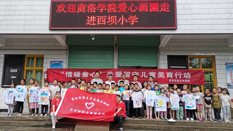 7月2日,我校承擔(dān)的公益項(xiàng)目“鄉(xiāng)村愛心畫圃”走進(jìn)了洛南縣保安鎮(zhèn)西壩小學(xué),項(xiàng)目指導(dǎo)教師、藝術(shù)學(xué)院教師李斌、王淦卿和李萍及項(xiàng)目成員參加活動。