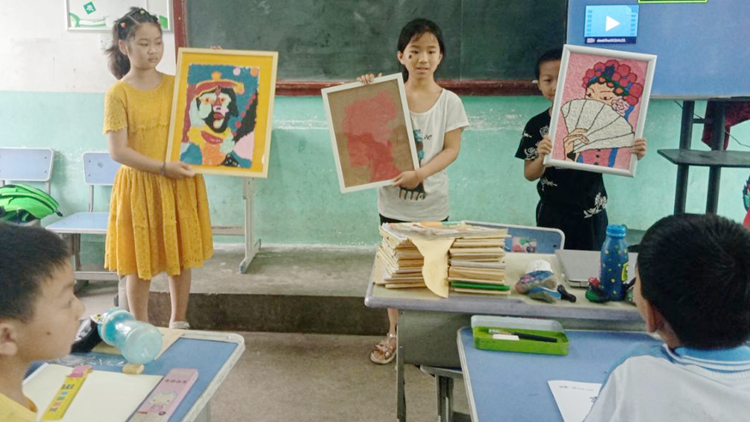 活動中,師生為該校留守兒童贈送了圖畫本、鉛筆、橡皮等繪畫用品。向小朋友們展示了校藝術(shù)學(xué)院學(xué)生制作的泥塑、石頭畫、剪紙拼畫、電腦繪畫等美術(shù)作品,拓展了小朋友們的審美視野,增強(qiáng)了大家的邏輯思維與形象思維能力,激發(fā)了大家熱愛美、發(fā)現(xiàn)美、追求美的熱情。師生還進(jìn)行了“T恤衫彩繪”現(xiàn)場學(xué)創(chuàng)實(shí)踐,用美術(shù)實(shí)踐與T恤衫繪畫相結(jié)合的教學(xué)方式,鼓勵和引導(dǎo)小朋友們嘗試多樣思維和多元表現(xiàn),進(jìn)一步增強(qiáng)了大家的實(shí)踐創(chuàng)作能力。在我校師生一對一、手把手的耐心講解與悉心指導(dǎo)下,每個(gè)小朋友都獨(dú)立完成了精美的美術(shù)作品。