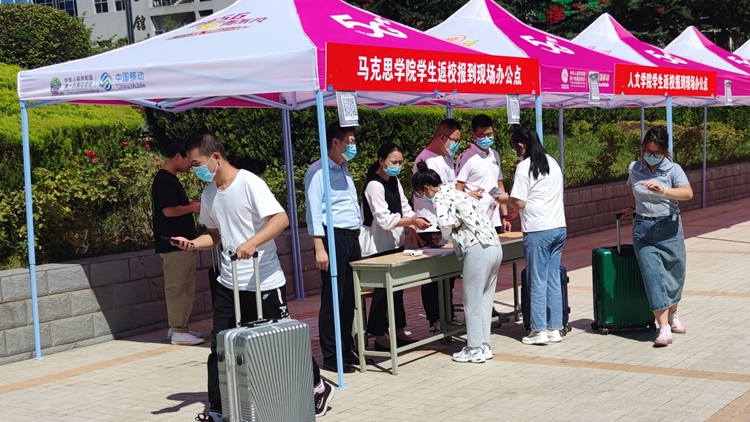 學(xué)校高度重視此次演練,制定了詳細(xì)的演練方案,模擬設(shè)置了學(xué)生入校、學(xué)生報到、應(yīng)急情況處理、核酸檢測等多個場景,對學(xué)生報到過程中的重點環(huán)節(jié)和風(fēng)險點、防控點進(jìn)行應(yīng)急實戰(zhàn)演練。演練自校門外開始,參演學(xué)生以1米以上間隔依次進(jìn)行掃描健康碼、身份核驗、查驗48小時內(nèi)核酸單、出示通信大數(shù)據(jù)行程卡、更換口罩、測量體溫、消毒等環(huán)節(jié)后通過測溫門進(jìn)入校門,在學(xué)院接待點進(jìn)行二次體溫檢測、核驗疫苗接種后統(tǒng)一前往玉蘭廣場進(jìn)行核酸檢測。門崗處還設(shè)置了臨時隔離點,為體溫異常的報到新生做進(jìn)一步檢測處理。