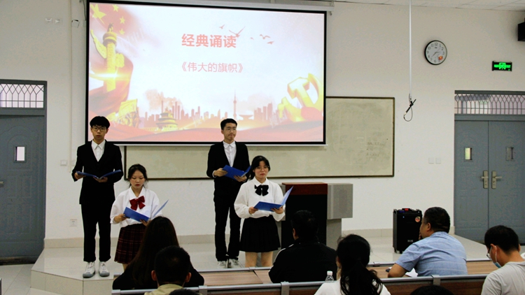 活動(dòng)開(kāi)始,同學(xué)們誦讀了一曲歌頌黨的史詩(shī)——《偉大的旗幟》,唱響紅色經(jīng)典《歌唱祖國(guó)》,獻(xiàn)禮建黨百年華誕。大家在鏗鏘有力的誦讀聲和嘹亮的歌唱聲中,共同回憶黨的輝煌歷史,感悟信仰的偉力,堅(jiān)定了聽(tīng)黨話、跟黨走的信心,燃燒了愛(ài)國(guó)主義激情,唱響了時(shí)代最強(qiáng)音——強(qiáng)國(guó)有我。