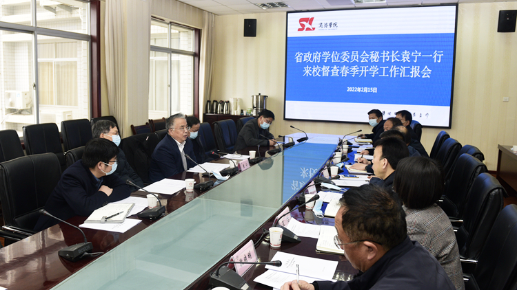 2月15日上午,陜西省政府學(xué)位委員會秘書長袁寧率督導(dǎo)組一行6人來校檢查指導(dǎo)春季開學(xué)工作。校長范新會主持召開工作匯報(bào)會,黨委副書記彭虎軍,副校長郭瑾,商洛市教育局副局長龔勝利出席會議。
